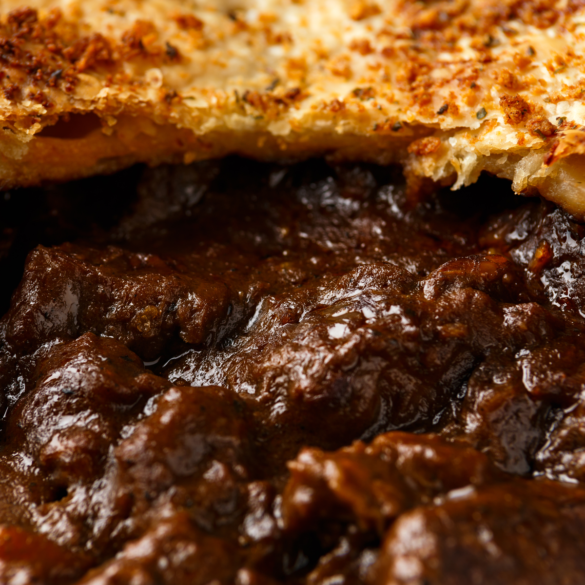 These are large round pies, encased in raw pastry and frozen. Easy to just get out of the freezer and bake for a luscious meal for the family. Why not buy some of our buttery mash potato to go with it? And a pot of our lovely red-wine gravy. Check out the options of our 'sides' menu.